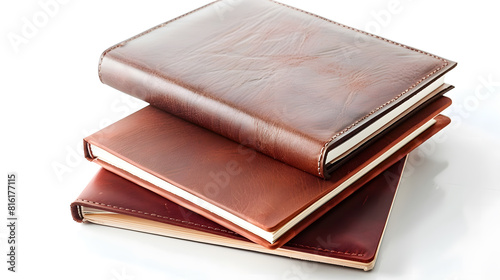 Leather notebooks isolated on white background : Generative AI