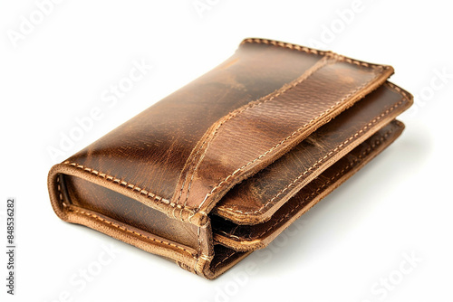 Leather Wallet with Cash and Cards: Brown Business Purse Isolated on White Background