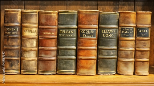 Leather-bound law books on a wooden shelf, symbolizing tradition and legal wisdom