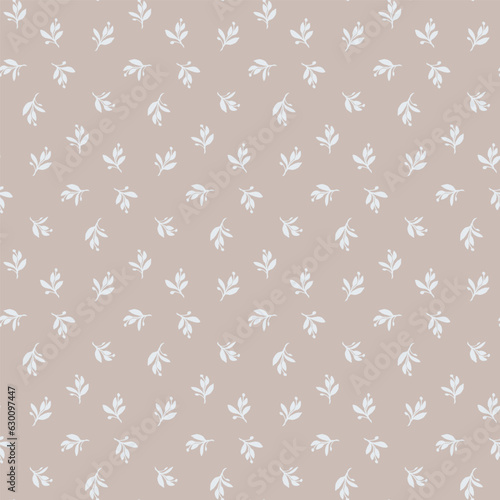 Leaves silhouette seamless pattern for textile design. Floral branch hand drawn vector background