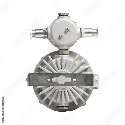 LED street flood light lamps in white strong metal housing for outdoor and indoor industrial use isolated on white.