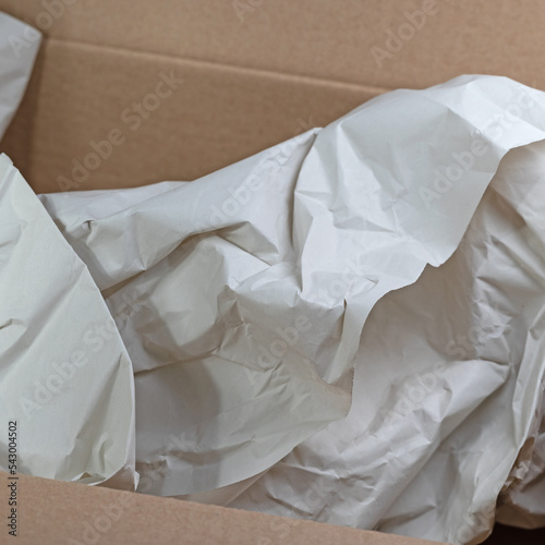 Leerer Karton mit zerknüllten Packpapier
