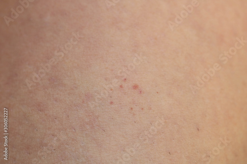 Leg showing Capillaritis due to Leaking Capillary Blood Vessels also known as Schamberg Disease. Rust-colored spots typical of Schamberg disease. Close up
