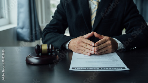 Legal consultant and real estate attorney lawyer read the building lease contract signing agreement for local business.