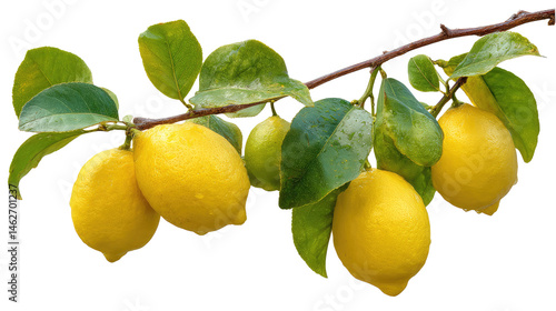 Lemon Branch With Large Yellow Ripe And isolated on a transparent background