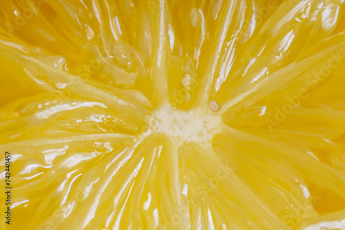 lemon pulp. yellow shiny pulp of a juicy lemon, macro, close-up, citrus fruit concept