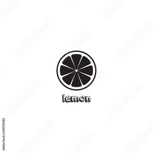 Lemon slice silhouette vector icon illustration on white background. Fresh sour vector lemon icon.