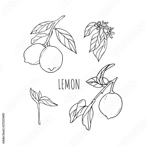 Lemon vector drawing. Lemon fruit artistic illustration.