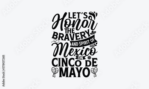 Let’s honor the bravery and spirit of Mexico on Cinco de Mayo - Cinco de Mayo T-Shirt Design, Vector illustration with hand-drawn lettering, typography vector,Modern, simple, lettering and white backg