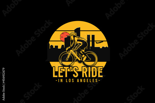 Let's ride in loos angel es, silhouette retro vintage style hand drawing