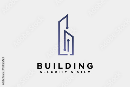 Letter B building cyber security logo design vector illustration. Letter B suitable for security and technology logos, isolated on white background