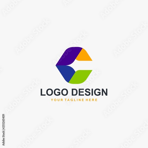 Letter C in polygon logo design vector. Abstract shape logo design. Full color logo design.