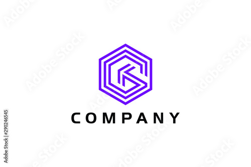letter G cube and arrow concept, digital logo template, hexagon icon vector ready to use