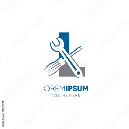 Letter L Screwdriver and Wrench Logo Design Vector Icon Graphic Emblem Illustration Background Template