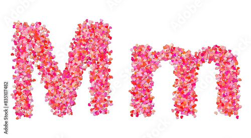 letter M made of red hearts. Heart shapes alphabet.