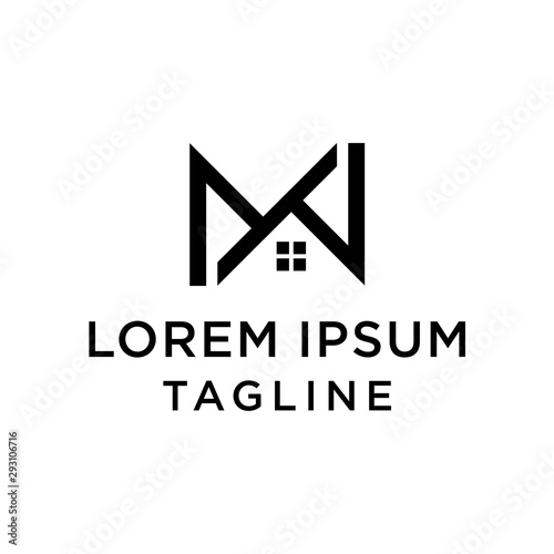 letter mw linked home shape logo vector