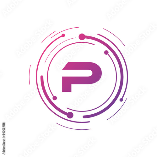 Letter P Initial Cyber Multimedia Logo