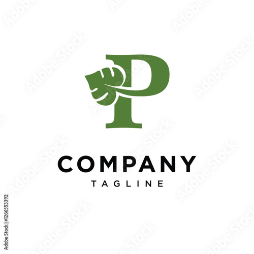 Letter P Monstera Leaf Spade Logo Icon Vector