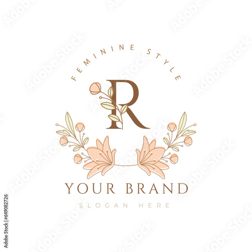 letter r flower modern minimalist floral font botanical beauty logo design vector illustration
