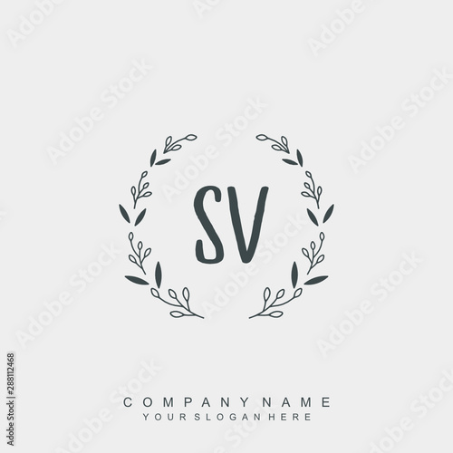 letter SV surrounded by beautiful and elegant flowers and leaves. Wedding monogram logo template.