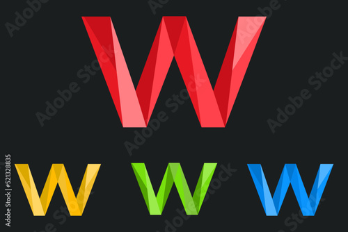 Letter W Polygonal Logo Vector Illustration. low poly, geometric design