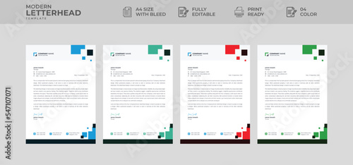 Letterhead design for corporate official with minimal and abstract design, professional and informative newsletter with green blue red yellow