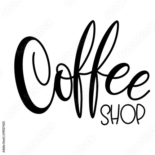 Lettering Coffee Shop. Calligraphic hand drawn sign. Coffee quote. Text for prints and posters, menu design, greeting cards. Vector illustration.