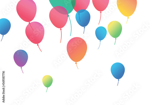 Lettering Happy Birthday To You white background. Holiday decorations with balloons, pennants and confetti. Greeting card can be used for congratulation, posters and banners.