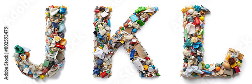Letters J, K, L. Alphabet Made of Various Types of Waste: Symbol of Waste