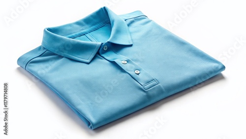 Light Blue Folded Polo Shirt, Isolated on White Background - Stock Photo