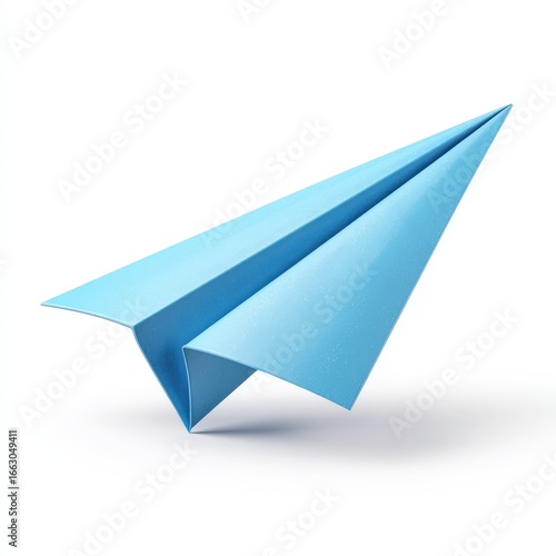 Light Blue Paper Airplane in Flight a 3D Render Illustration for Childhood Memories Travel and Dreams