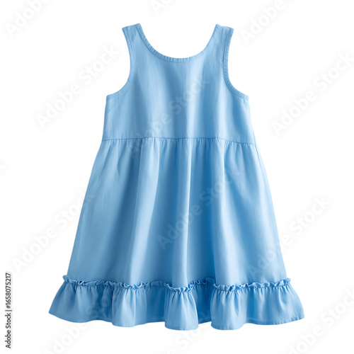 Light blue sleeveless girls dress with ruffled hemline a summery style for kids