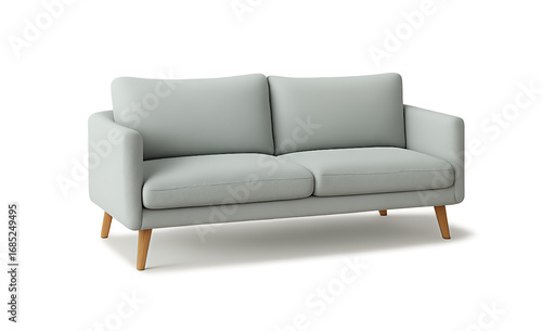 Light blue sofa with wooden legs isolated on transparent background