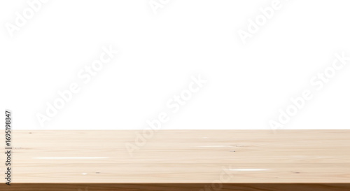 Light brown wooden table surface with a transparent background, isolated on transparent background