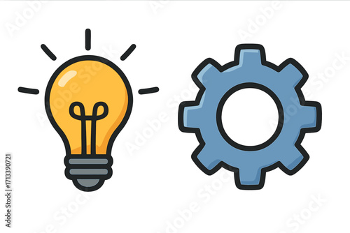 Light bulb and gear icon for innovation and ideas. Creative process, solution, and brainstorming concept. Technology development and settings symbol. Vector illustration.