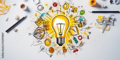 Light bulb idea whit hand drawing and bright at the night.