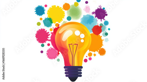 Light bulb symbolizes creativity and innovation, surrounded by colorful splashes representing idea generation and inspiration. This vibrant image evokes sense of excitement and possibility