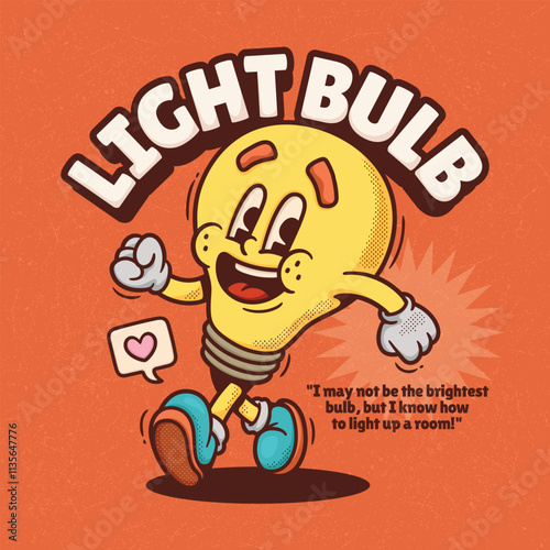 Light Bulb Trendy Retro Cartoon Vector Hand Drawn