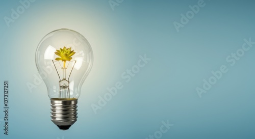 Light bulb with succulent plant symbolizing eco-friendly innovation and creativity against a soft blue background