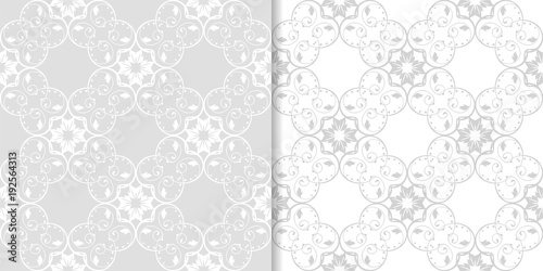 Light gray floral backgrounds. Set of seamless patterns