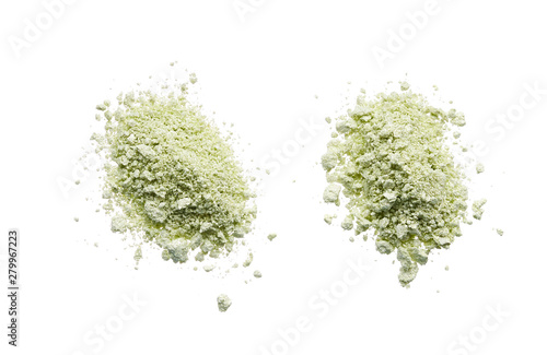 Light green eyeshadow or make up face powder isolated on white background.