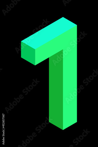 Light green number 7 in isometric style. Isolated on black background. Learning numbers, serial number, price, place.