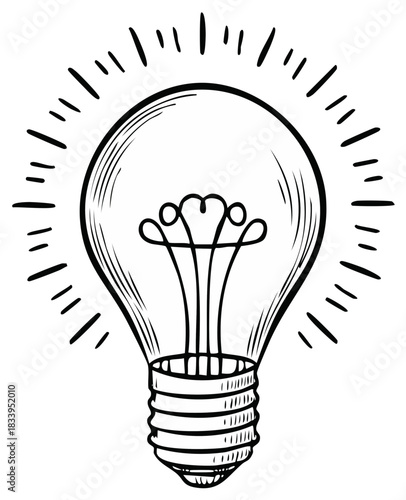 Lightbulb Hand Drawn with Rays Simple Line Art for Idea Innovation Concepts