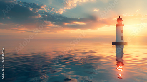 Lighthouse During Golden Hour with a Warm Glow and Soft Light