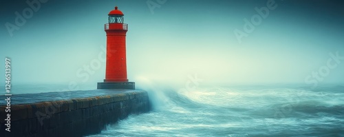 Lighthouse withstanding the storm's fury: A beacon of hope amidst the raging sea.