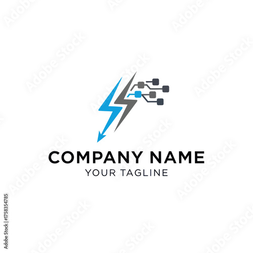 Lightning Bolt Circuit Board Logo Design for Technology Company.