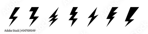 Lightning bolt vector icon set. Flat style.