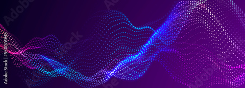 Lights background. Colored music wave. Big data digital code. Futuristic dots Illustration. 3D