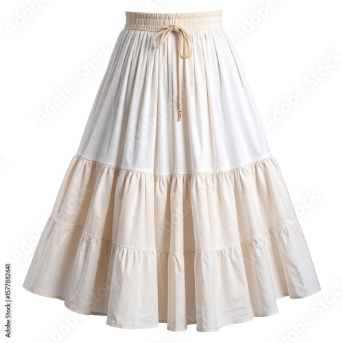 Lightweight Cotton Tiered Maxi Skirt with Drawstring Waist, Front View, Isolated
