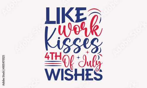 Like work Kisses 4th Of July Wishes - 4th of July t-shirt Design, Typography Design, Download now for use on t-shirts, Mug, Book and pillow cover. 4th of July Bundle.